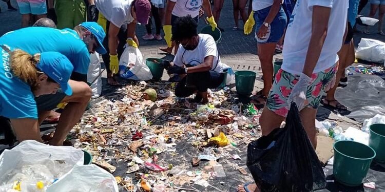 Por meio do “Praia Massa é Praia Limpa”, um grupo de voluntários ficou responsável pela coleta do lixo na faixa de areia e na área submersa das praias.